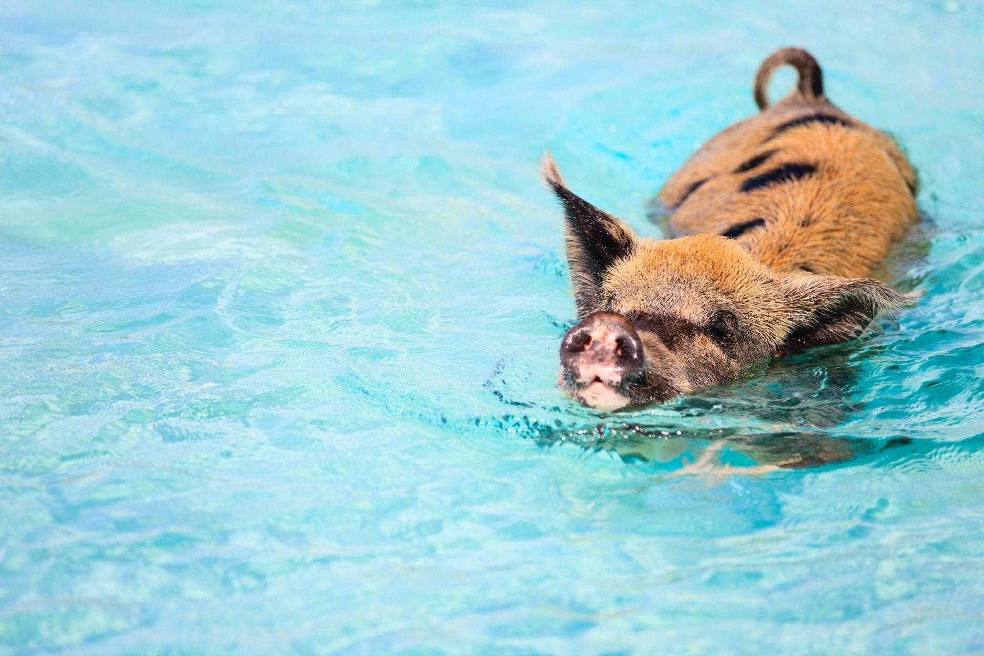 Mit Schweinen baden auf den Bahamas